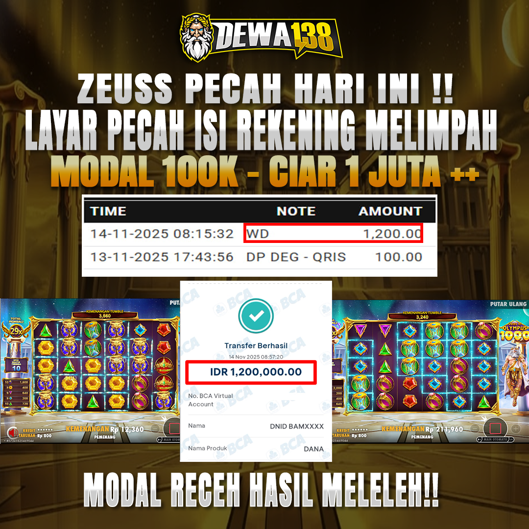 Cek sendiri DEWA138 tempat game jackpot dalam waktu singkat cuma di sini depo 100k bisa withdraw 1,5 juta Sudah di kasih bukti bukan janji yakin ga main?!Rugi Dong!.